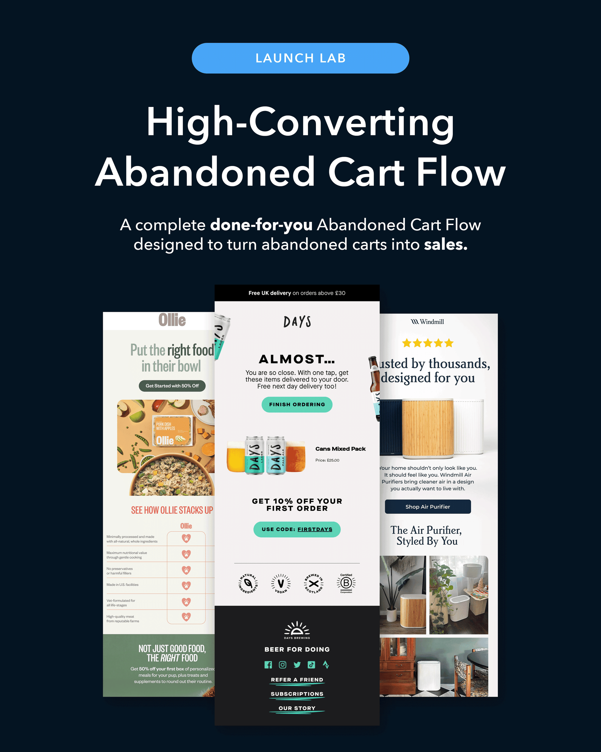 β Add a second flow that targets abandoned carts to recover more sales (Most brands only have an abandoned checkout flow and miss out on all carts and a ton of sales)