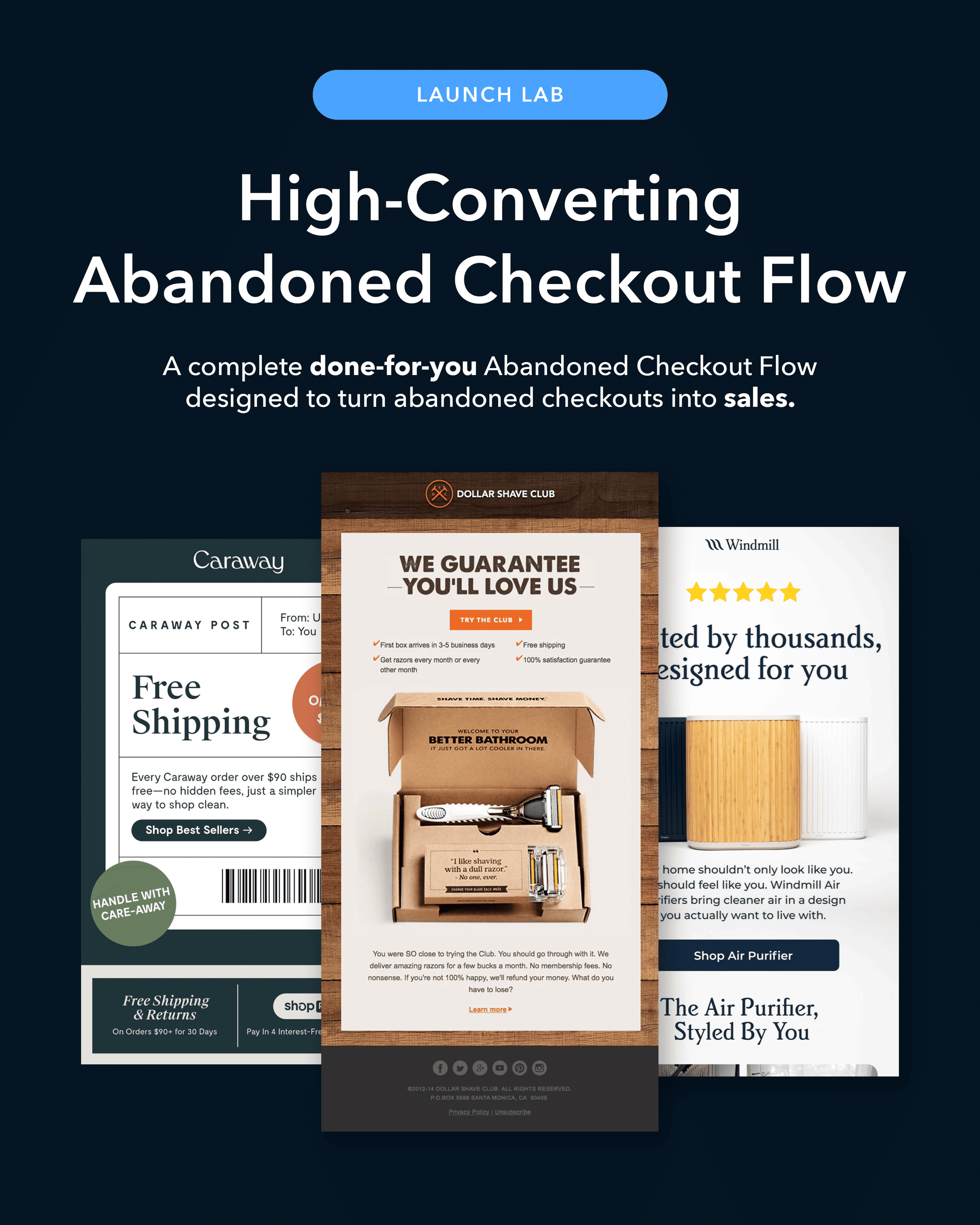 ✓ Full Abandoned Checkout Flow that retargets people who didn't complete a checkout and brings them back to purchase