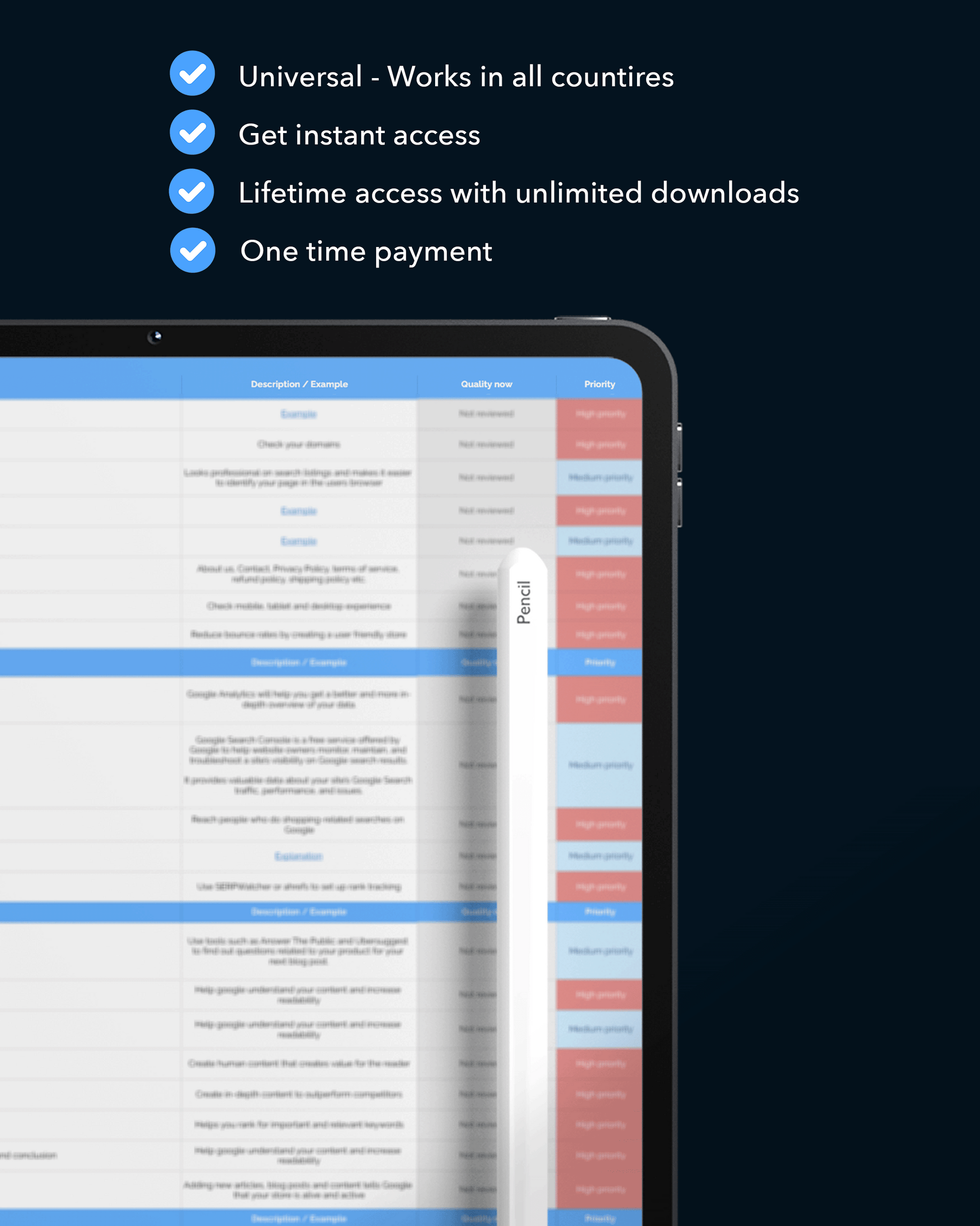 - You get lifetime access to the original checklist